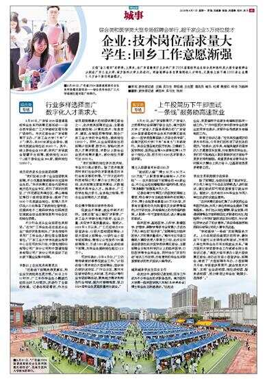 “我们招聘的岗位多为技术岗,专业对口是必要的。除了技术维度同时我们也会评估求职者是否对本行业有足够的热情。”广州文远知行科技有限公司人事介女士向记者介绍,此次招聘主要面向算法、大数据等技术类专业人才。她表示,广工的学生能力多元,业务能力较强,符合企业招聘的人才期望。