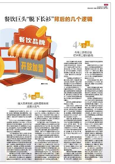 “连锁餐企到直营是为了建立标准、规则,打磨品牌、健全供应链,等成熟了就会把前端更重的开店成本和繁琐的日常管理剥离,筛选当地有财力、有资源的加盟商合作。”一位餐饮资深业内人士对记者说,餐饮连锁集团要想大规模连锁发展,要想跨区域经营甚至跨国界,最终都会从前端走向“幕后”,以品牌力和供应链等后端能力为支撑,让特许加盟商去开拓疆土。