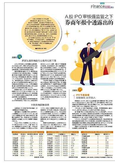 A股上市券商2023年业绩单陆续出炉,截至4月6日,共有26家发布了成绩单。在全面从严加强对企业发行上市活动的背景下,券商机构的投行业务在2023年表现普遍欠佳,A股IPO企业数量及发行规模均有下降,全市场合计313家企业完成IPO,同比下降26.87%,发行规模同比下降39.26%。在经纪、资管、投行等业务均不同程度下滑的态势下,仍有15家券商实现净利润正增长,占比约六成。其中,14家券商营业收入超100亿元,2家券商净利润超100亿元。