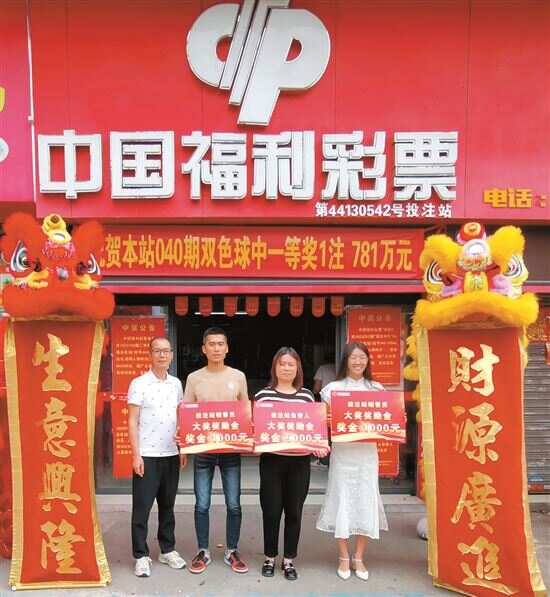 新快报讯 记者陆妍思 通讯员袁苏华报道 4月11日,中国福利彩票双色球第24040期开奖,摇出中奖号码为:红球“11、14、18、19、23、26”;蓝球“02”。佛山市高明区44130542福彩销售站点中出1注头奖,中奖彩票是一张1倍5注机选单式票,中得1注一等奖,中奖奖金为7810178元。