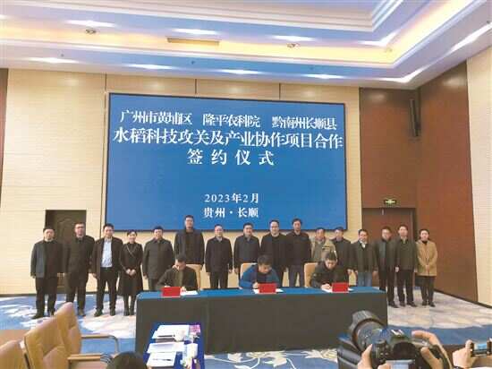 为了推动长顺县粮食种植产业的高质量发展,2023年2月,广州市黄埔区、隆平农业科技黄埔研究院和黔南州长顺县签约,针对西部高原山地的特点,开展水稻科技攻关及产业协作项目合作。