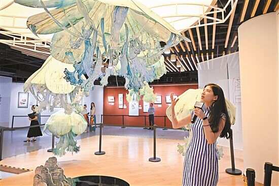 纸艺艺术家温绮雯介绍她与齐家弟子陈鹏翔共创的作品,作品创新融合了水母和虾的元素。