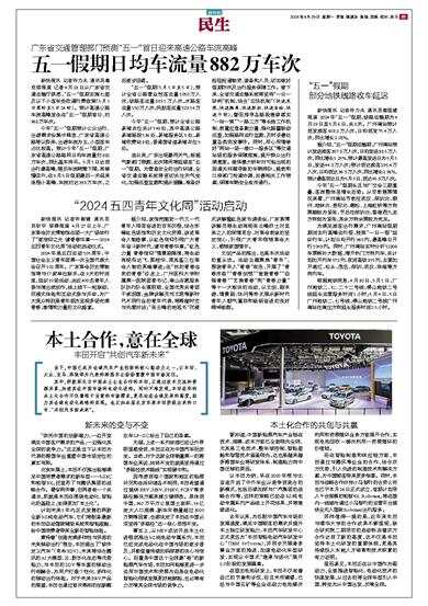 新快报讯 记者许力夫 通讯员粤交综报道 记者4月28日从广东省交通运输厅获悉,“五一”假期实施七座及以下小客车免收通行费政策(5月1日零时至5日24时)。预计高速公路车流高峰发生在“五一”假期首日,约968万车次。
