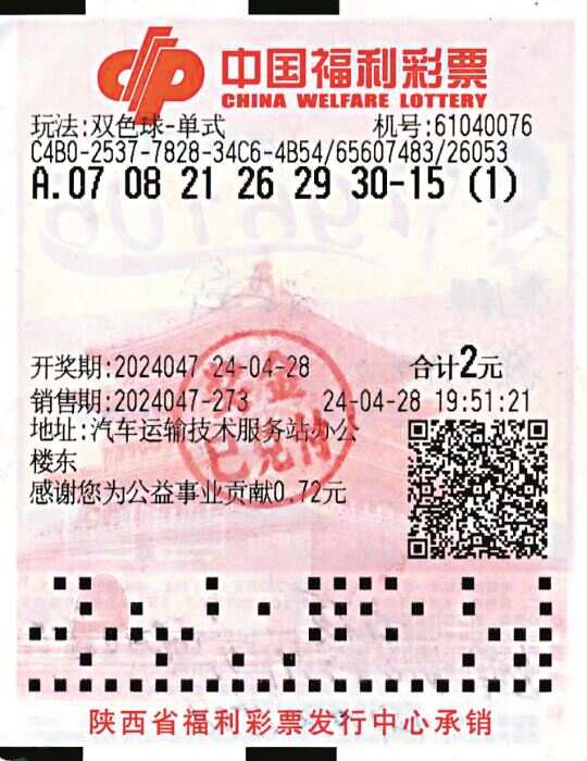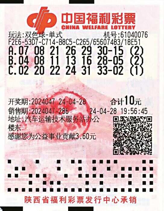 中奖者自称购彩超过二十年,目前只玩双色球,基本以单式倍投为主;由于经济实力允许,每期投注金额在百十元。4月28日19:51至19:56,中奖者在咸阳秦都区世纪大道汽车运输技术服务站办公楼东的61040076销售网点购买了5张双色球彩票,均为单式投注,第一张为1注机选单式票,后又累计复制相同号码24倍,并另外机选其它号码4注(2注各2倍、2注各1倍,分两张票),共计31注,投入62元。开奖后25注中得当期双色球一等奖,6注未中奖,中奖金额为1.48024875亿元,按国家规定,缴纳个人偶然所得税2960.4975万元。