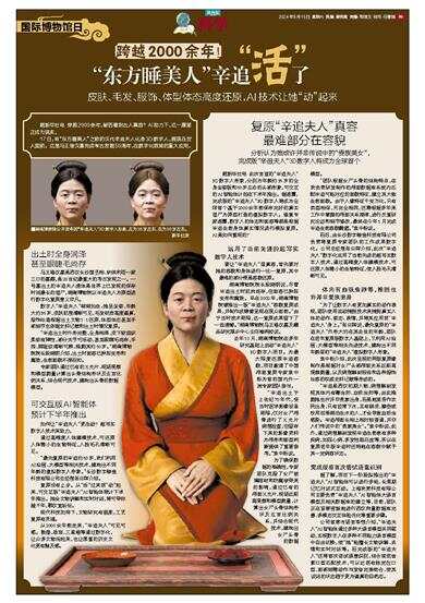 复原没有止步。从“活”过来到“动”起来,可交互版“辛追夫人”AI智能体预计下半年推出。她会文物讲解和实时对话,将可带你越千年,聊汉室纷纭。