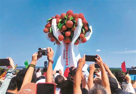 “刚摘下来的白糖罂,尝一个”……5月16日早上,湛江市徐闻县迈陈镇北街荔枝文化广场人山人海,四方客商、慕名而来的游客簇拥而至,共赴一场久违的“甜蜜之约”。“岭南春来早,北街荔先熟”,正当全国各地为今年荔枝减产而担忧时,这里已早早迎来“荔枝自由”,率先打响广东荔枝营销的第一枪。