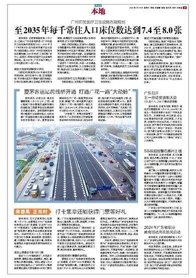 新快报讯 记者黄闻禹报道 5月17日,记者从广州市政府获悉,《广州市医疗卫生设施布局规划(2021—2035年)》(下称《规划》)经市政府同意于近日发布。《规划》提出,结合广州市空间规划与生活圈构建,2035年形成“三核四极”多中心、组团式、网络化的医疗卫生设施布局结构。至2035年,广州市每千常住人口床位数达到7.4至8.0张。