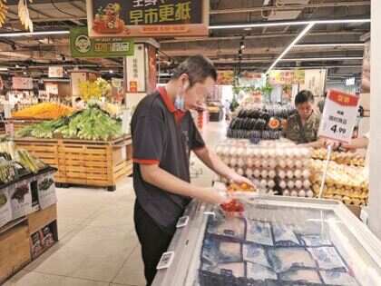 ■汤淼在超市认真工作。