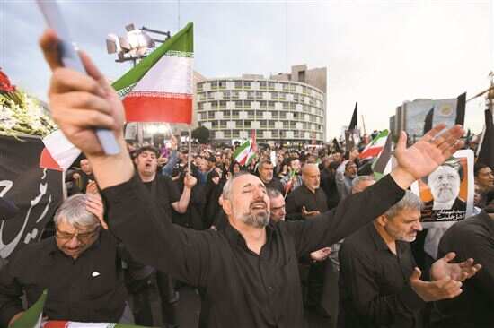 ■5月20日,在伊朗首都德黑兰,民众悼念直升机坠毁事件遇难者。新华社发