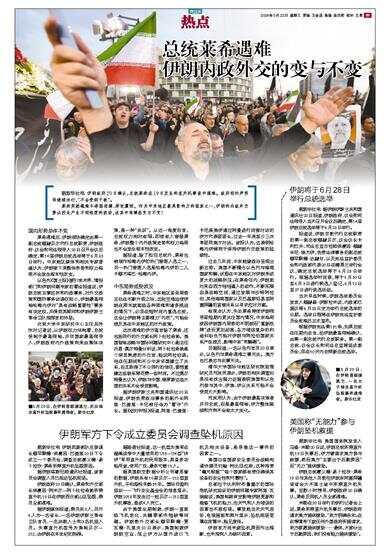 伊朗总统赛义德·易卜拉欣·莱希19日与其他人员前往伊朗东阿塞拜疆省省会大不里士途中所乘直升机失事。经数小时搜寻,伊朗政府20日确认,莱希及同机人员全部遇难。
