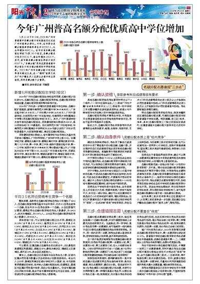 5月11日下午3时,2024年广州市普通高中名额分配计划电脑派位仪式在广州市招考办举行。今年,全市符合名额分配报考资格的考生共92262人,比去年增加4642人。全市共有名额分配招生学校79所、93个校区,名额分配总计划为26031个,较去年增加1816个,其中,省市属名额分配招生学校计划为4597个。“名额分配”是将优质普通高中部分招生计划合理分配到初中学校的政策。2023年广州市名额分配计划完成率首次超过九成,这一“福利”政策已成为广州户籍生升入优质公办高中的主要途径,用好名额分配十分重要。