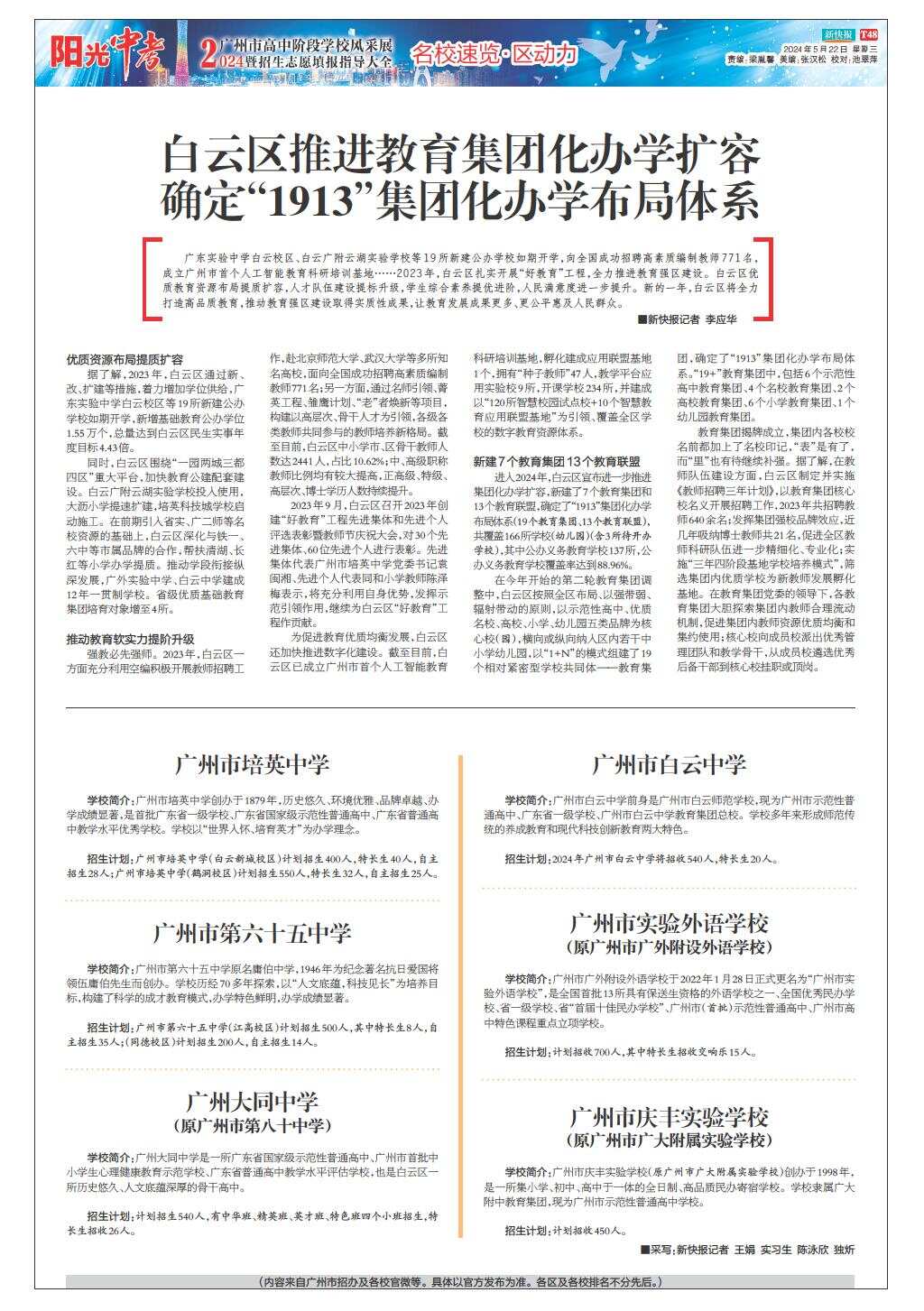 白云区推进教育集团化办学扩容 确定“1913”集团化办学布局体系