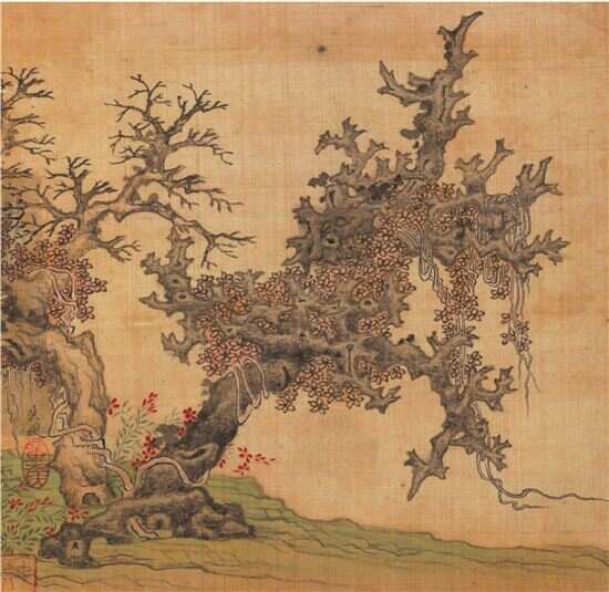 其一,永恒,就是生命的不断流。比如陈洪绶有幅《古木茂藤图》,千年老木向右倾斜,尽显枯朽,但有盘盘匝匝藤儿依附其上,既似依附,也似怀抱,在被动和主动的双重姿态中,古藤绽放繁星般细花。“中国艺术家说生趣、说生生,就是说这不断流的精神。”