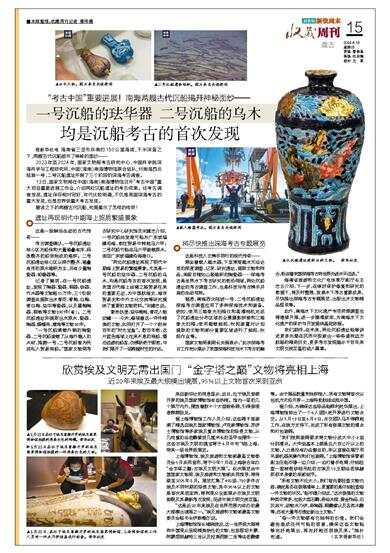 “两处沉船遗址再现了明代中期海上贸易的繁盛景象,尤其是一号沉船的珐华器、二号沉船的乌木,均是沉船考古的首次发现,是我国古代海上丝绸之路贸易往来的重要见证,为中国航海史、海洋贸易史和中外文化交流等研究提供了重要的实物资料。”宋建忠说。
