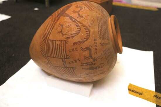 5月23日在位于埃及首都开罗的埃及国家博物馆拍摄的将要打包的陶罐。新华社发