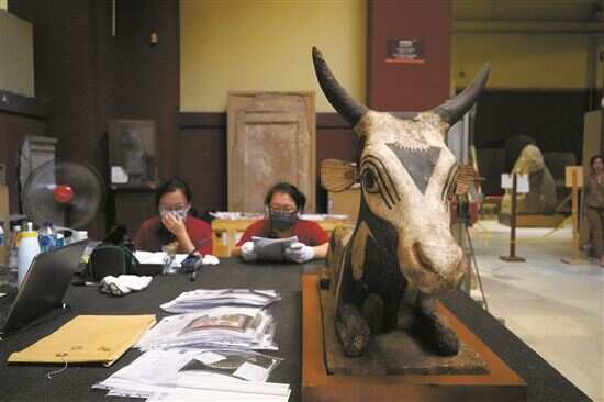 “所有文物不论大小,我们首先要检查文物内容、确定是否在参展清单上,更重要的是仔细检查每一件文物的状况。”赵岑瑒介绍说,“这次参展的文物种类非常多,包括大型石雕、彩绘木棺、黄金饰品、石灰岩片、动物木乃伊、彩陶器、铜雕像以及各类木雕等,还有大量考古遗址新出土文物。”