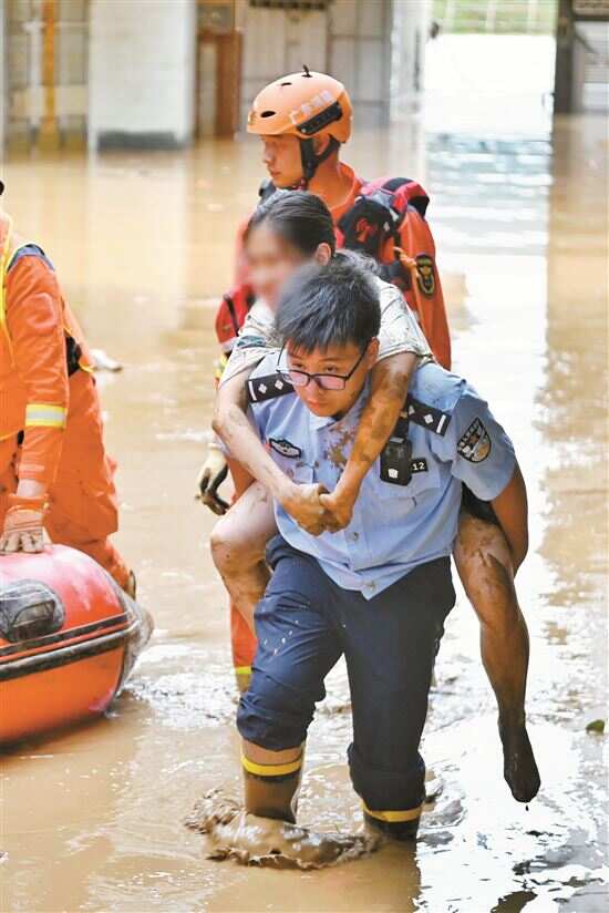 “你别怕,有我们在,你不会有事的!”救援民警大声安慰。一句掷地有声的话语让老人渐渐冷静了下来。民警在泥水中慢慢摸索前行,来到老人身边,最终合力将老人背到皮筏艇上,顺利转移到安全地带。