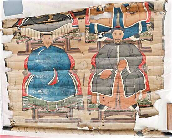 ■《个人藏 宗族肖像》-修复轴装 修复前