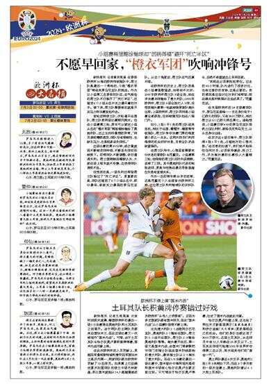 新快报讯 记者高京报道 在晋级欧洲杯16强的欧洲传统强队中,荷兰队是最后一个亮相的,今晚“橙衣军团”将迎来罗马尼亚队的挑战。作为以小组第三名晋级的队伍,运气极佳的荷兰队不仅躲开了“死亡半区”,还碰到6个小组头名中实力最平庸的对手。接下来,荷兰队需要做的就是开足马力向决赛发起冲击。