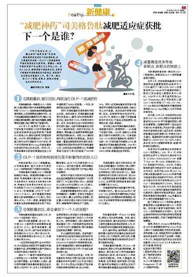 2021年4月,每周皮下注射一次、可使体重平均减轻15%的司美格鲁肽注射液的减肥适应症便获得了美国FDA批准上市,继而也获得了欧盟的批准。2023年,诺和诺德完成了一项以中国人群为主的Ⅲ期临床STEP7研究,用于评估肥胖患者中2.4mg司美格鲁肽注射液的疗效以及安全性。同年6月,司美格鲁肽注射液的减重适应症上市申请获得了NMPA的受理。一年后,其减肥适应症在我国获批。