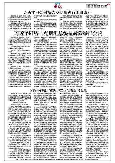 据新华社电 7月5日,在对塔吉克斯坦进行国事访问之际,国家主席习近平在塔吉克斯坦《人民报》和“霍瓦尔”国家通讯社发表题为《共创中塔关系美好明天》的署名文章。文章全文如下: