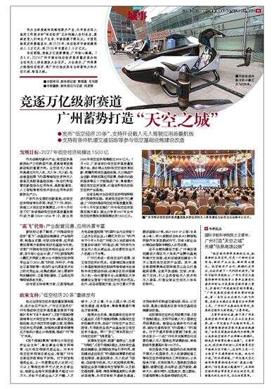 新快报记者了解到,广州推动低空经济“高飞”,在基础设施建设、产业链布局、制造业支撑、市场主体培育、应用场景拓展等方面拥有良好的基础与优势。目前广州拥有低空经济相关企业300多家,其中核心企业69家,广州亿航智能和小鹏汇天两家上榜2023中国低空经济领军企业TOP20,极飞科技、华科尔、中海达卫星导航等一批在行业内具备技术实力的优秀企业,在集成测试、核心零部件和关键材料、卫星导航通信、工业级应用等领域具有优势。