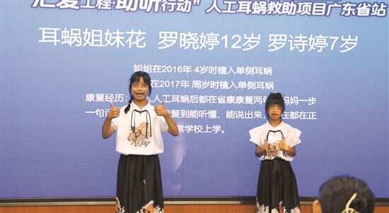 活动现场,两名广州听障女孩——12岁的晓婷和7岁的诗婷为观众献上舞蹈表演《你笑起来真好看》。精彩的演出,让台下观众看到植入人工耳蜗后,听障儿童重回有声世界的美好。据了解,植入人工耳蜗是重度听障患者的重要治疗方式之一,但许多患者和家庭往往对此认知不足,此外高昂的费用也让人退却。“汇爱工程·助听行动”人工耳蜗救助项目是省残疾人公益基金会的重点项目之一,通过植入人工耳蜗,帮助听障人群重建听力,更好地参加言语训练、学习和成长。