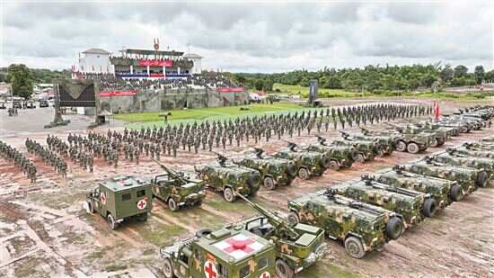 联合实兵演练在老挝人民军库玛丹学院训练场举行,中老参演官兵围绕“联合防卫作战”课题,区分侦察布势、联合抗击、多路强击、合力清剿、结束战斗5个阶段,完成了侦察行动、无人机反制、联合火力反击、步兵排进攻战斗、装甲步兵班车内外协同、机降突击和战场急救等多个课目演练。