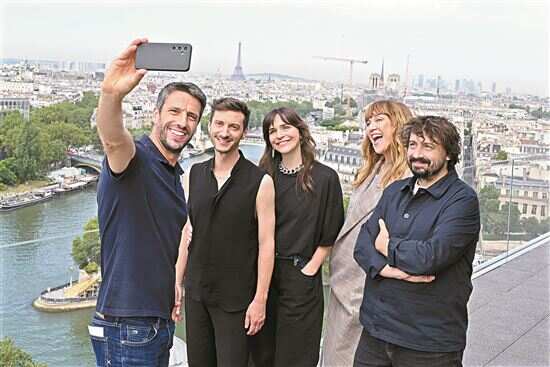 7月19日,托尼·埃斯坦盖(左一)、托马斯·乔利(左二)与艺术团队主创人员自拍合影。