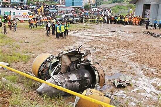■这是7月24日在尼泊尔加德满都拍摄的飞机坠毁现场。新华社发