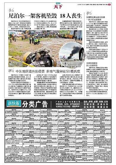 据新华社电 尼泊尔民航局发言人潘迪24日说,当天一架客机在尼首都加德满都特里布万国际机场坠毁,造成18人死亡、1人受伤。目前该机场已关闭。
