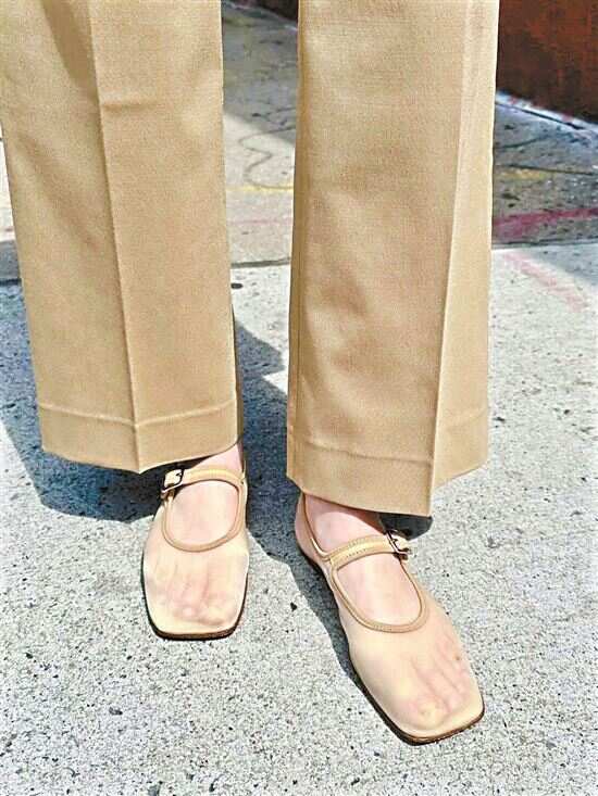 最受欢迎的莫过于芭蕾舞鞋款了,优雅中带着时髦,一字带的款式对脚背可以起到修饰作用。