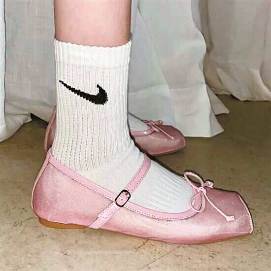 ■渔网芭蕾舞鞋搭配裙装可以很好地体现整体造型的优雅舒适感。