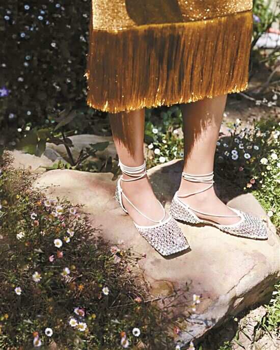 网纱款也分有弹和无弹面料,弹力材质网面细密,穿起来包裹感强,适合更多脚型。无弹面料塑型感要强一些,设计、样式更丰富。如果不太能接受这样一览无余的“裸足”效果,就选择后者,鞋子上加点缀的款式如钻饰、刺绣、蕾丝等,虽然风格上有一定限制,但也更能给一身基础款穿搭增添亮点。