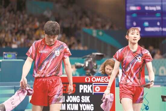 27日,在巴黎奥运会乒乓球混双首轮比赛中,日本组合张本智(左)和/早田希娜1比4不敌朝鲜组合李正植/金琴英,无缘晋级。新华社发