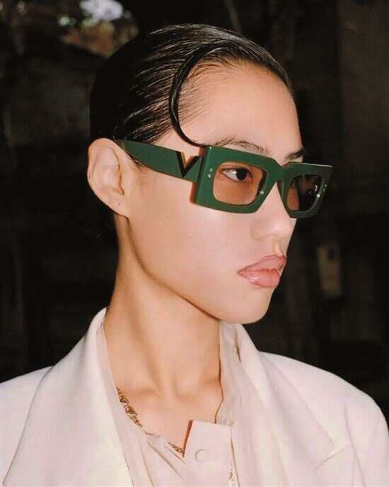 超大尺寸的方框墨镜则对修饰下颌线超级友好,在“瘦脸神器”这个赛道上一骑绝尘,本季开始更是变本加厉,尺寸能遮住大半张脸。