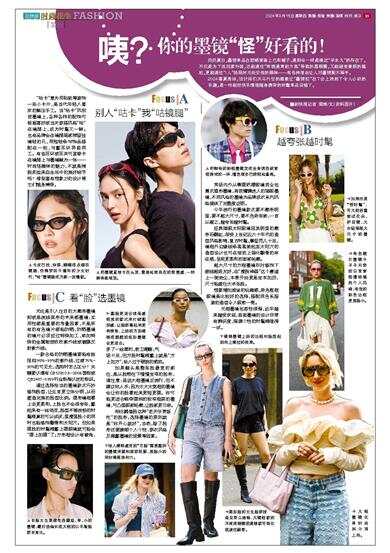 如果热衷“怪时髦”,可大胆创意尝试花朵、护目镜、大水钻等超大尺寸的墨镜。