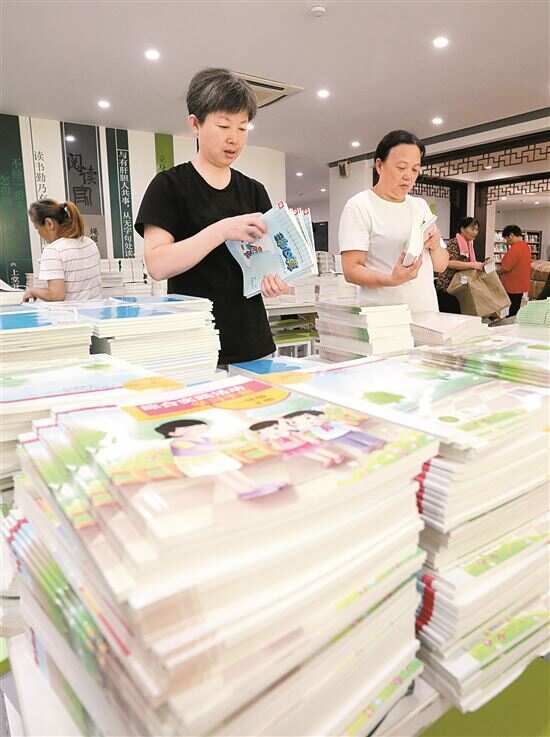 ■8月26日,在江苏省苏州市带城实验小学校,教职工在清点整理教材。