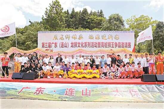 第三届广东(连山)龙狮文化系列活动暨高桩狮王争霸邀请赛参与人员合影。