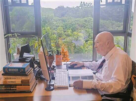 ■钟世镇在电脑前工作。