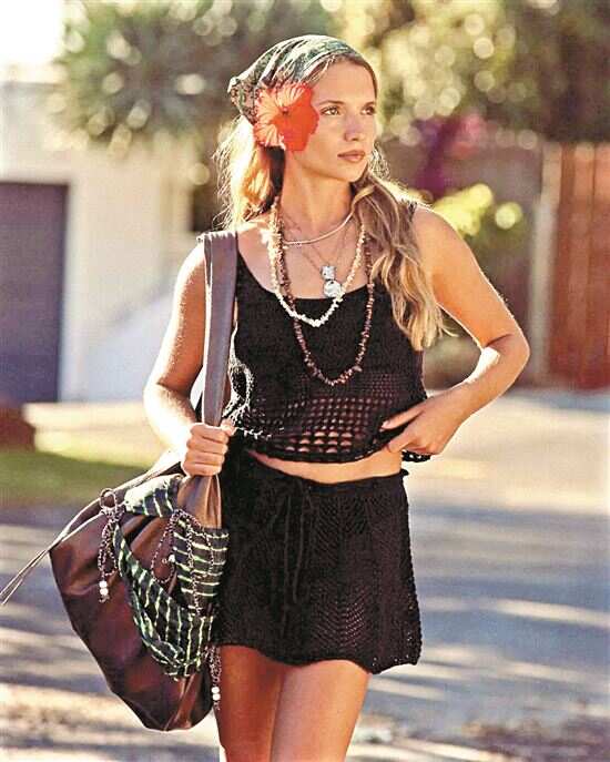 典型的波西米亚穿搭是一条飘逸的连衣裙,轻盈流畅的面料如丝绸、蕾丝和雪纺,赋予服装轻松自在的质感,让穿着者举手投足间展现奔放气质;裙上图案更多偏向浓重鲜艳的色彩,并通过条纹与佩斯利花纹的碰撞或蕾丝上衣与流苏裙的组合,营造出独特的装扮效果。