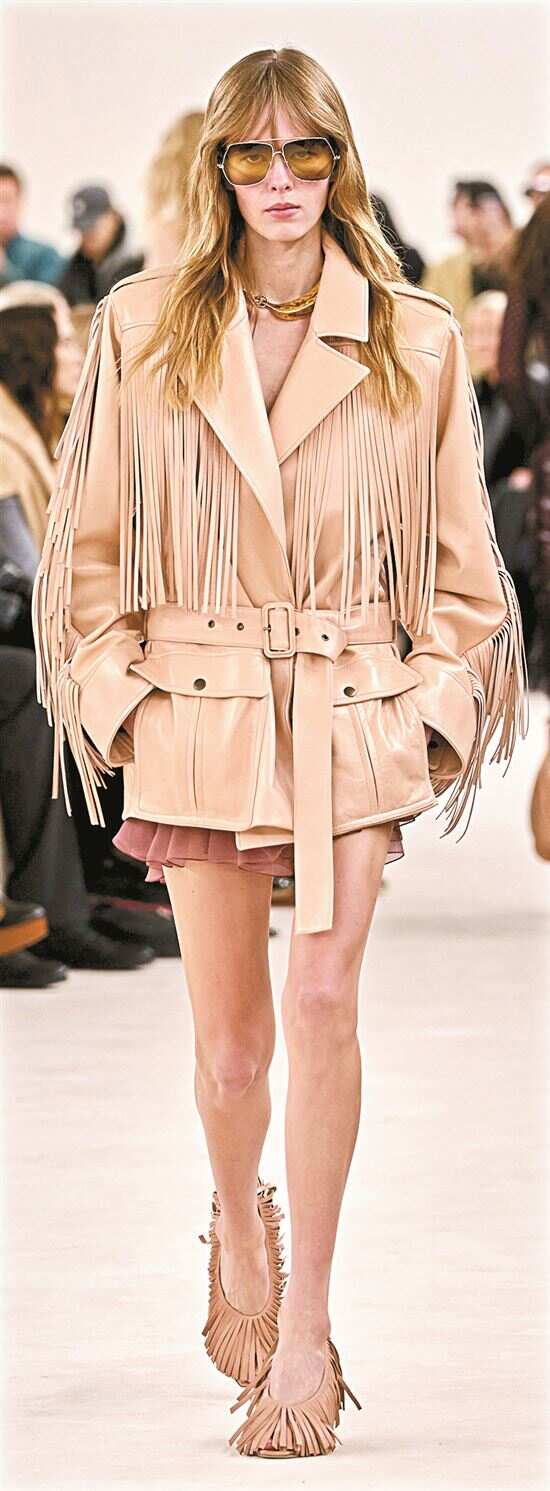 今年秋季秀场时尚界已跟上潮流,Isabel Marant的设计师用流苏元素贯穿整场秀,反复强调品牌基因中的波西米亚精神;Chloe的秋冬秀场更多展现新一季波西米亚风:轻盈浪漫以及飘逸廓形营造出随性自由的氛围,同时又将这一风格演绎得更干练飒爽;而到了RABANNE,品牌的2024秋冬时装秀通过混搭多种材质和风格,创造了一系列既舒适又充满个性的现代波西米亚风情单品如拼接皮革上衣、大格纹裤子、超大毛毯式开衫及带有水晶刺绣的紧身衣,整体造型在怀旧与时尚间达到了微妙的平衡。
