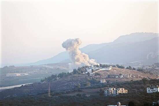 9月24日在黎巴嫩南部基拉村拍摄的以军轰炸产生的浓烟。新华社发