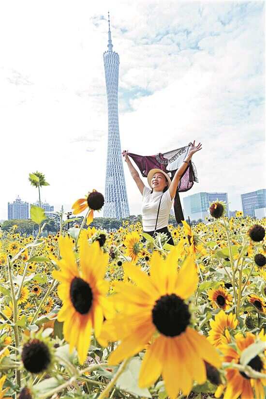 ■国庆期间,海心沙公园的向日葵灿烂绽放,吸引市民游客拍照打卡。 新快报记者 王飞/摄