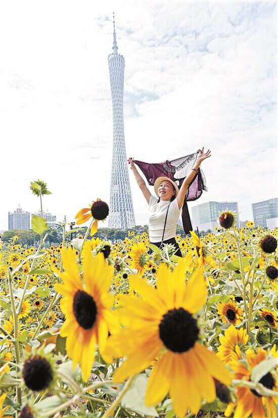 ■国庆期间,广州海心沙公园的向日葵绽放,吸引市民游客拍照打卡。 新快报记者 王飞/摄