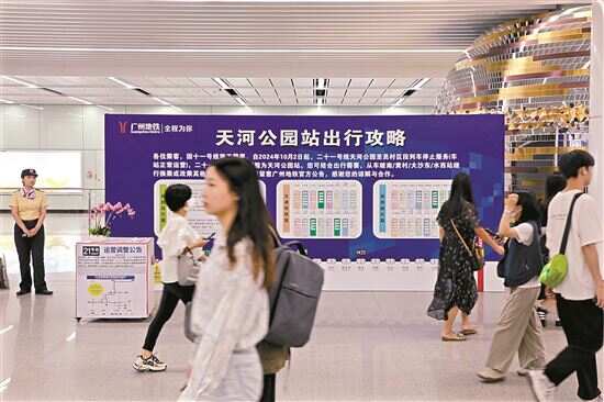 记者在咨询台遇到一位男乘客,他在天河智慧城上班,平时都是从地铁5号线员村站坐到天河公园站转21号线,国庆前他回了老家,没关注新闻,节后上班第一天就蒙了。工作人员告诉他,可以到黄村换乘,也可以坐公交前往天河公园站。该乘客衡量后觉得,绕行换乘更折腾,选择了公交换乘。