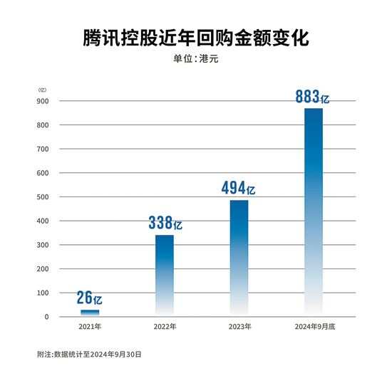 新快报讯 记者郑志辉报道 根据港交所最新公开信息显示,三季度腾讯控股回购金额达359亿港元。今年前三个季度腾讯已累计回购2.5亿股,回购总额达到882.6亿港元,创历史同期新高。截至10月7日收盘,腾讯今年已经回购超890亿港元。