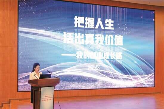 “我是一个辛苦的女人,也是一个幸福的女人。”“中国LED行业十大影响力人物”之一、广东省女企业家协会常务副会长、广东昭信集团股份有限公司董事长梁凤仪介绍说,几十年前她还是一个打工妹,与其他42名家庭妇女一起你十元、我八块地凑了300元股金创业。慢慢地,她带领昭信创下了多个“第一”,带领企业自主创新,获得了600多项自主专利;推动企业数字化、智能化发展。她说,“敢为人先,快人半步”就是企业最大的发展经验。梁凤仪勉励学生们要“把握人生,活出真我价值”。