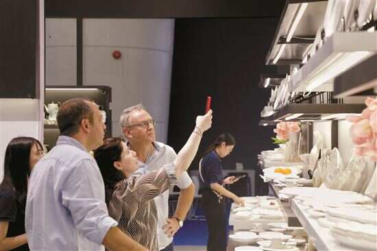 广州五矿进出口公司在展位上全新推出SPC、WPC、碳晶板等一系列新型复合板材,吸引境外采购商摩肩接踵,大家都对新型复合板材表现出浓厚的兴趣。广州五矿进出口公司百货事业部总经理梁倩雯接受记者采访时表示,“这届全新推出的板材采用天然石灰粉(碳酸钙粉)、竹炭粉、硅藻泥和聚氯乙烯为主要原料,高温复合后再用高压挤压而成,不仅不含甲醛和苯,非常健康环保,同时性能坚硬稳定,防潮防滑,可以加工各种颜色花纹,是一种新颖经济的低碳装饰材料。”她透露,开展首日上午就吸引了络绎不绝的客户,共接待来自中东、印度、俄罗斯、加拿大等国家和地区50多名明确表达出采购意向的客商。