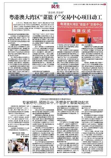 10月29日,“粤港澳大湾区‘菜篮子’交易中心暨全球农食产品国际合作启动仪式”在广州市白云区钟落潭举行。有关负责人表示,作为“菜篮子”工程核心的流通枢纽,粤港澳大湾区“菜篮子”交易中心在广州市白云区钟落潭正式奠基,标志着广州市传统农产品食品批发市场疏解及迭代升级迈出了坚实步伐。